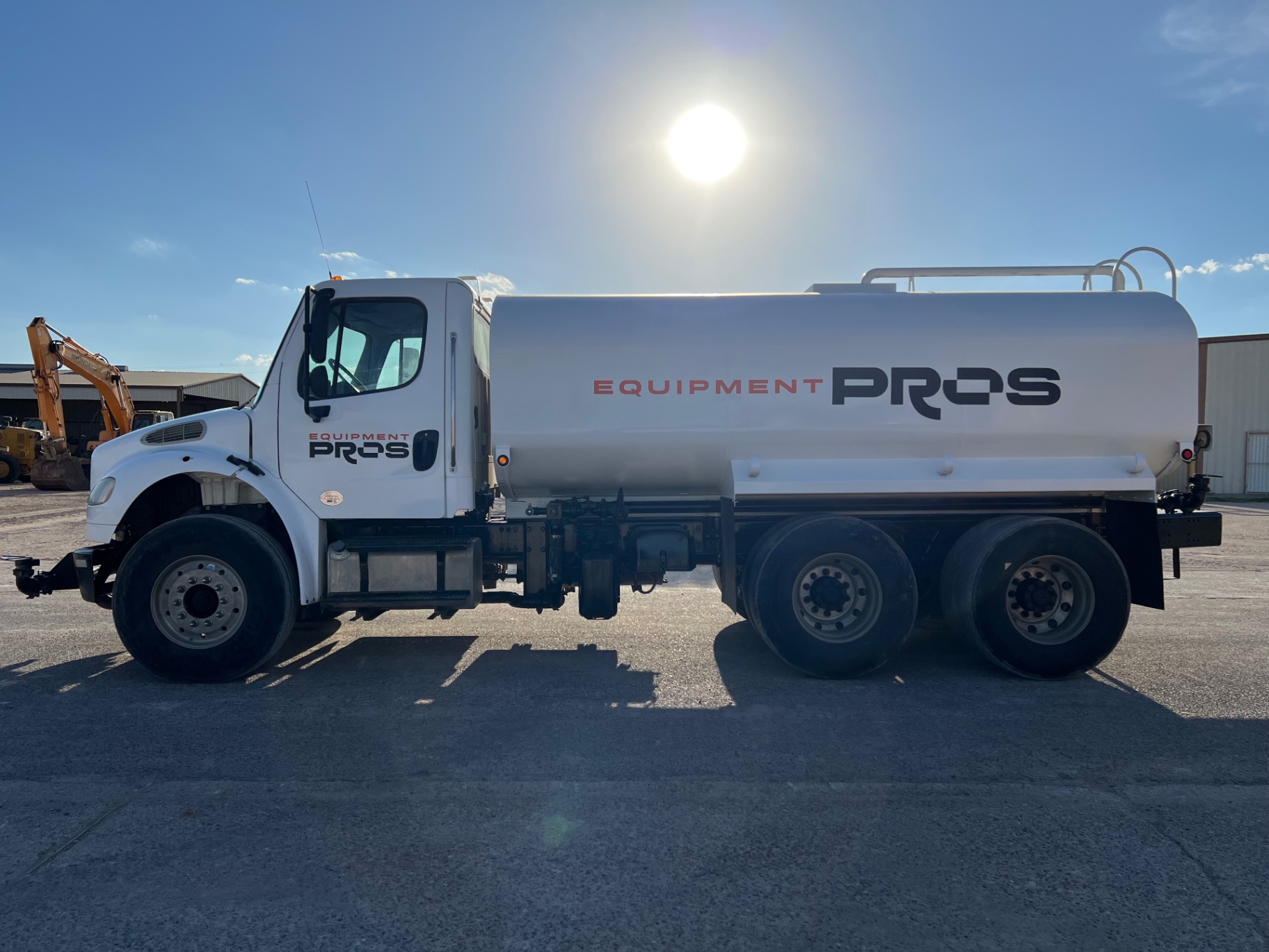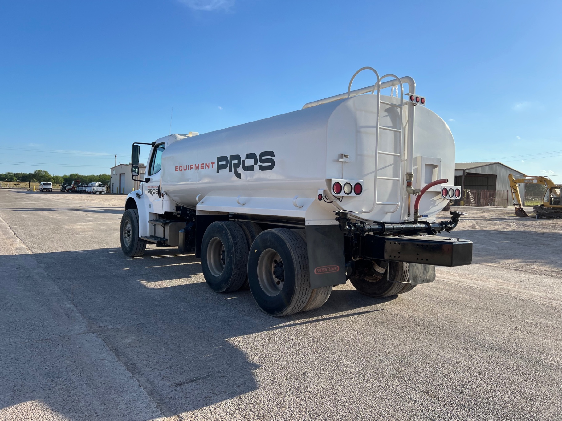 Cummins 6 cyl diesel engine, 330 hp, eaton fuller 10-speed manual transmission, 35,000 lb GVWR, air ride, hendrickson haulmaax suspension, 4,000 gal water tank, pto driven pump, front, rear, and side spray,