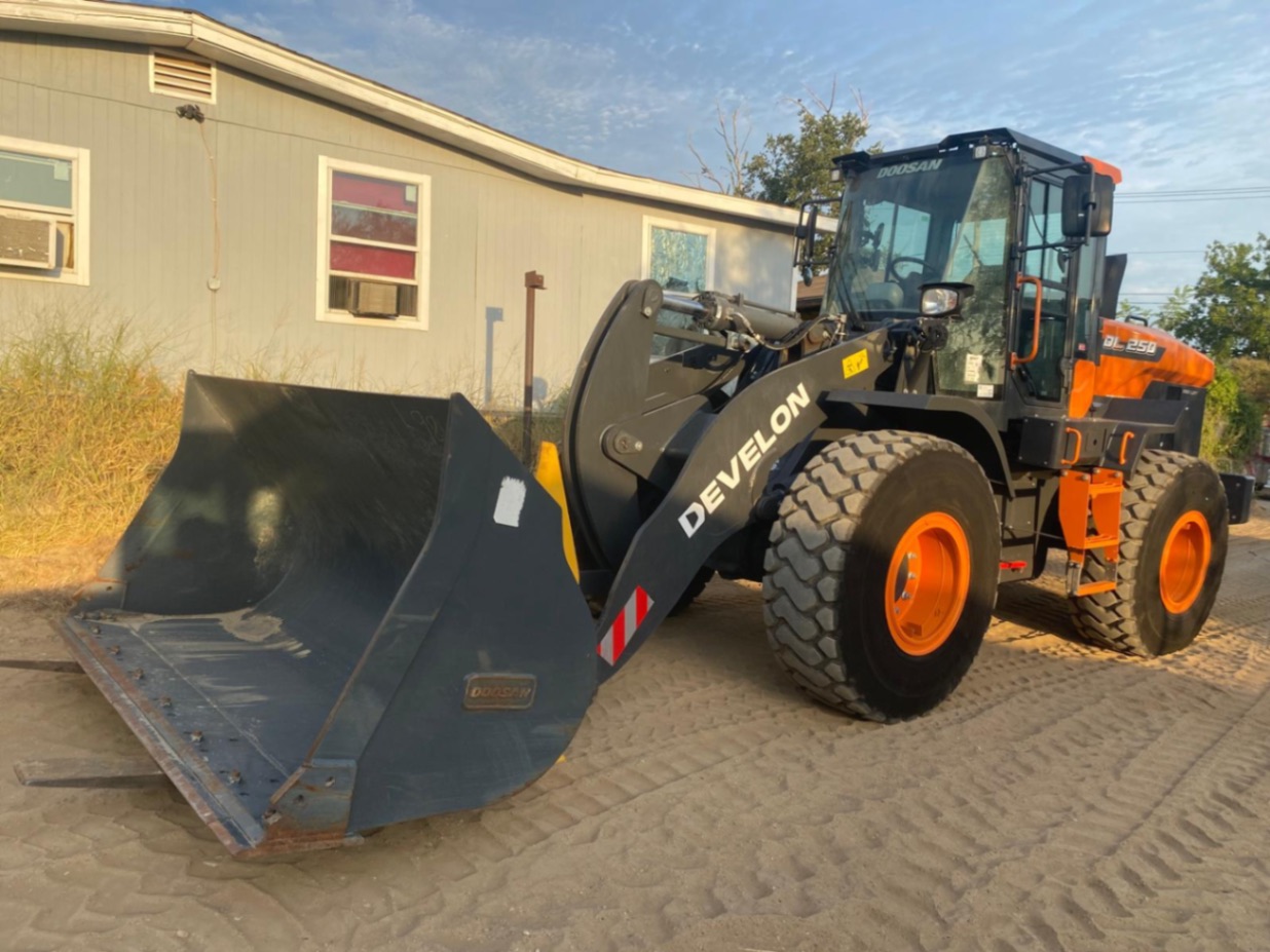 enclosed cab, a/c, hydraulic quick coupler, 3.5 yd bucket, forks, rear view camera, 20.5R25, warranty valid until